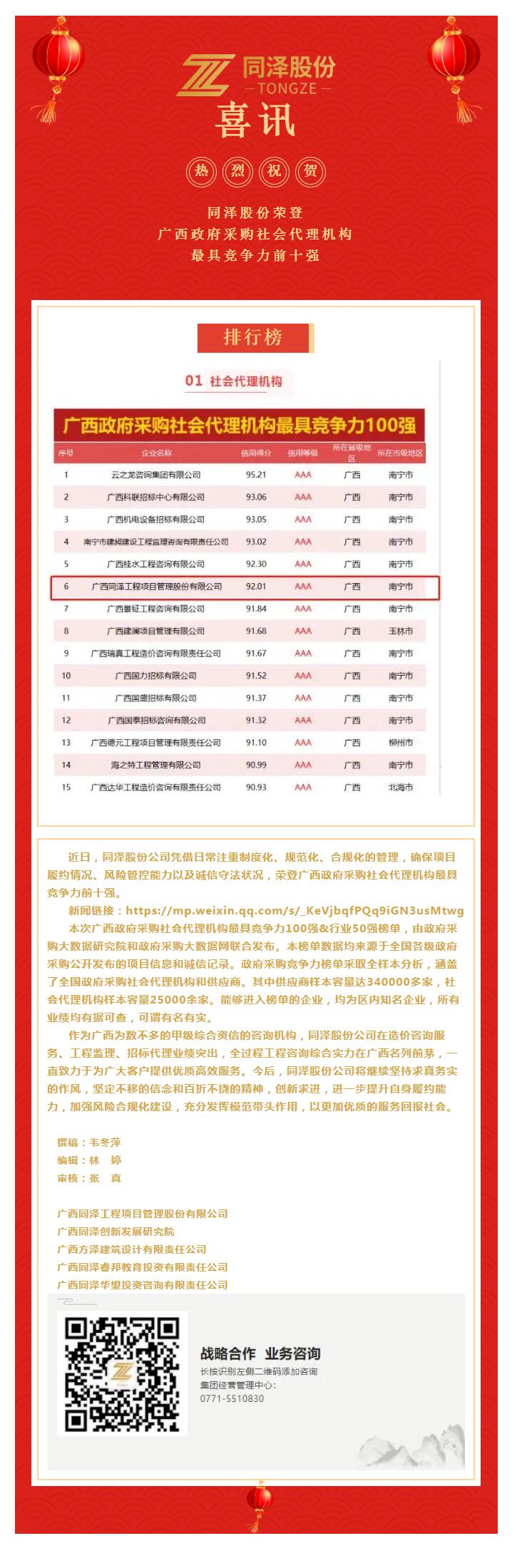 喜訊|同澤股份榮登廣西政府采購(gòu)社會(huì)代理機(jī)構(gòu)最具競(jìng)爭(zhēng)力前十強(qiáng)