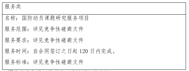 二、項目名稱:國防動員課題研究服務(wù)項目